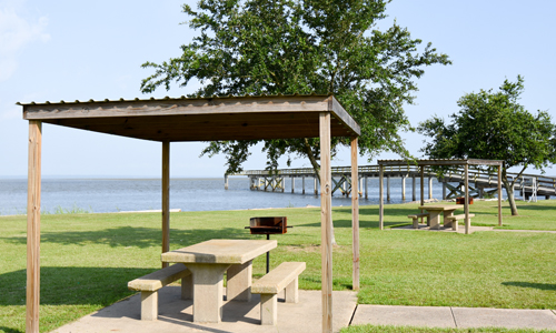 Located in front of the USS ALABAMA, the picnic area also has a fishing pier for those who would like to wet their hook.  A valid Alabama Fishing License is required to fish from the pier.